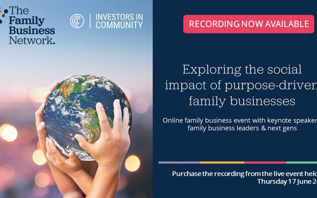 An online event held on 17 June, ‘Exploring the social impact of purpose-driven family businesses’ hosted by The Family Business Network and Investors in Community has raised funds for five charities.